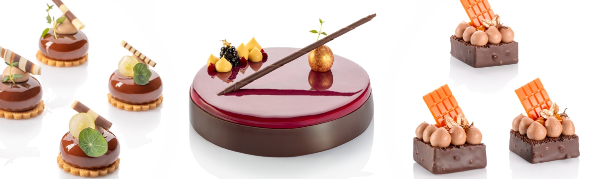 Ideias atraentes para trufas de chocolate e recheios para copos monoporções, tartes, pralinés e sobremesas em pratos, adequadas para várias ocasiões ao longo do ano, e inclui conceitos e arranjos prontos com decorações de chocolate Barbara Decor.