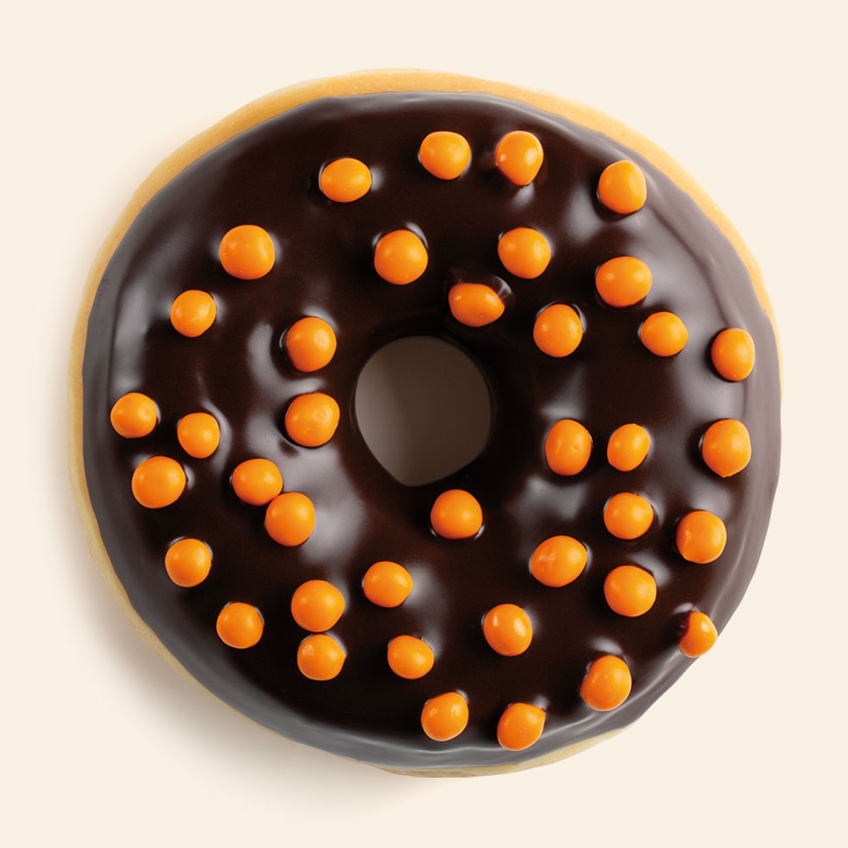 Pequenas bolas de cereais cobertas com chocolate puro de cor laranja.