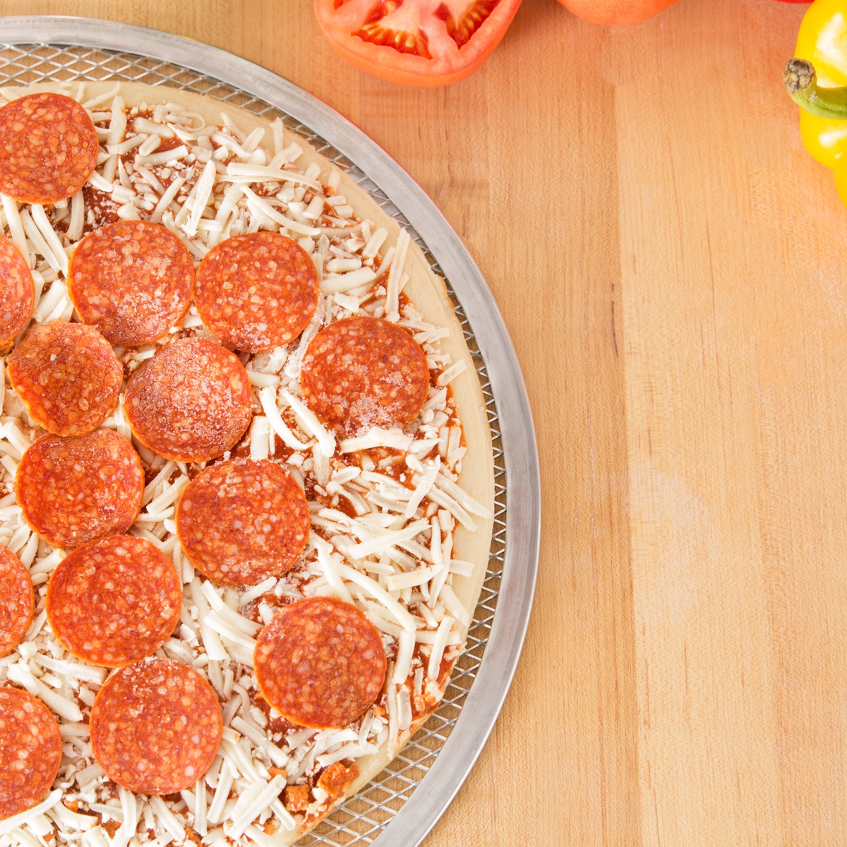Uma ferramenta necessária para qualquer pizzaria, esta grelha de alumínio para pizza vai ajudar a sua pizza a cozer de forma mais uniforme, permitindo que o ar circule sob a crosta!