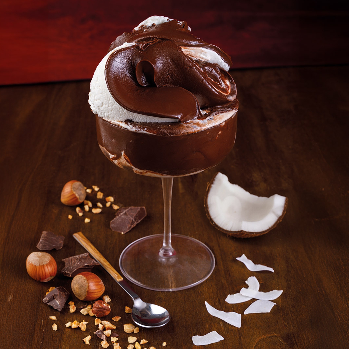 A Cioccolatina Classica Veggie tem o sabor intenso e satisfatório do chocolate e da avelã e a textura macia e rica que não derrete nem escorre sobre o gelado, típica da Cioccolatina Classica.