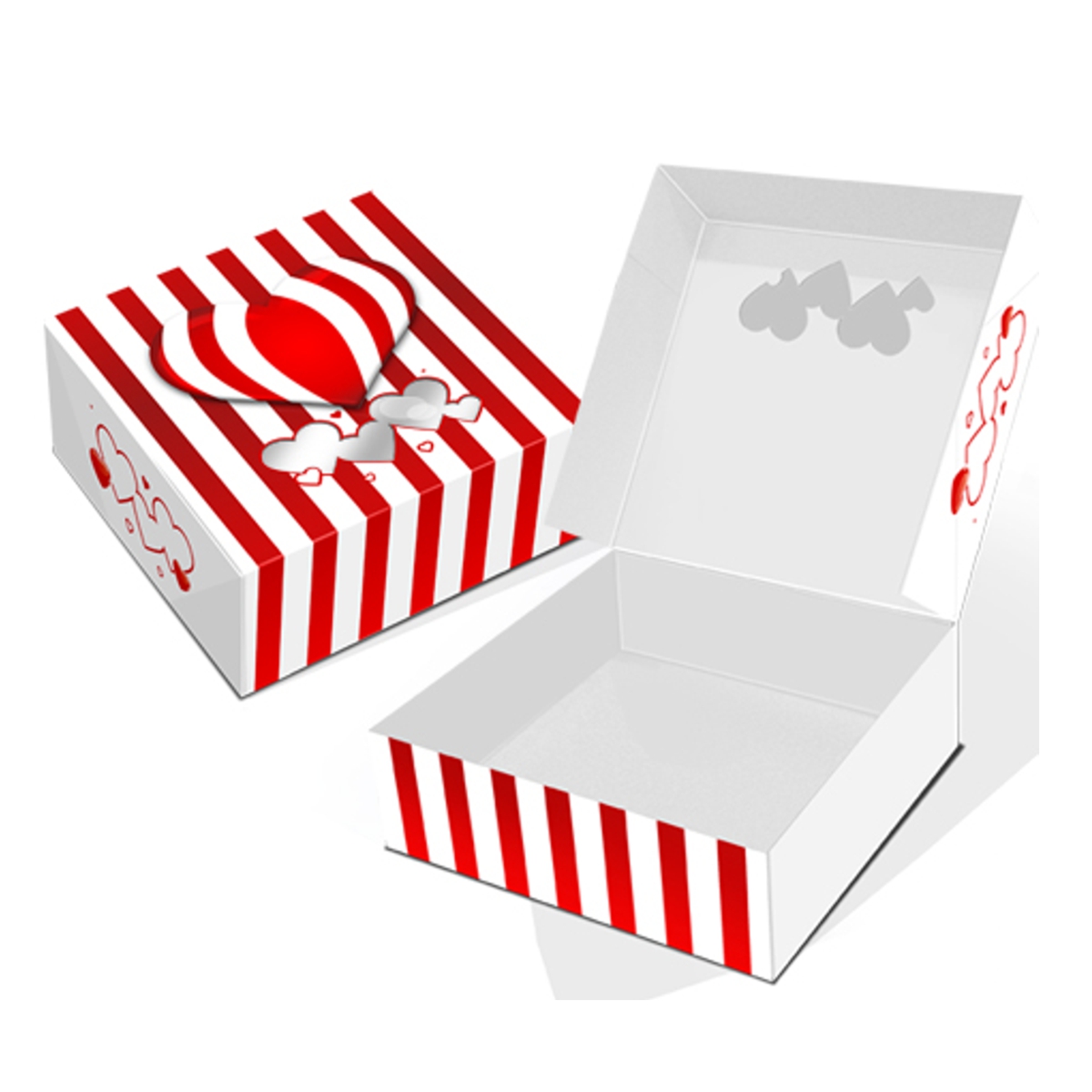 A janela em coração oferece uma pré-vista apelativa do conteúdo, transformando cada embalagem numa peça pronta a oferecer, enquanto a tampa basculante facilita o enchimento e a extracção sem danificar a decoração das suas confeções.