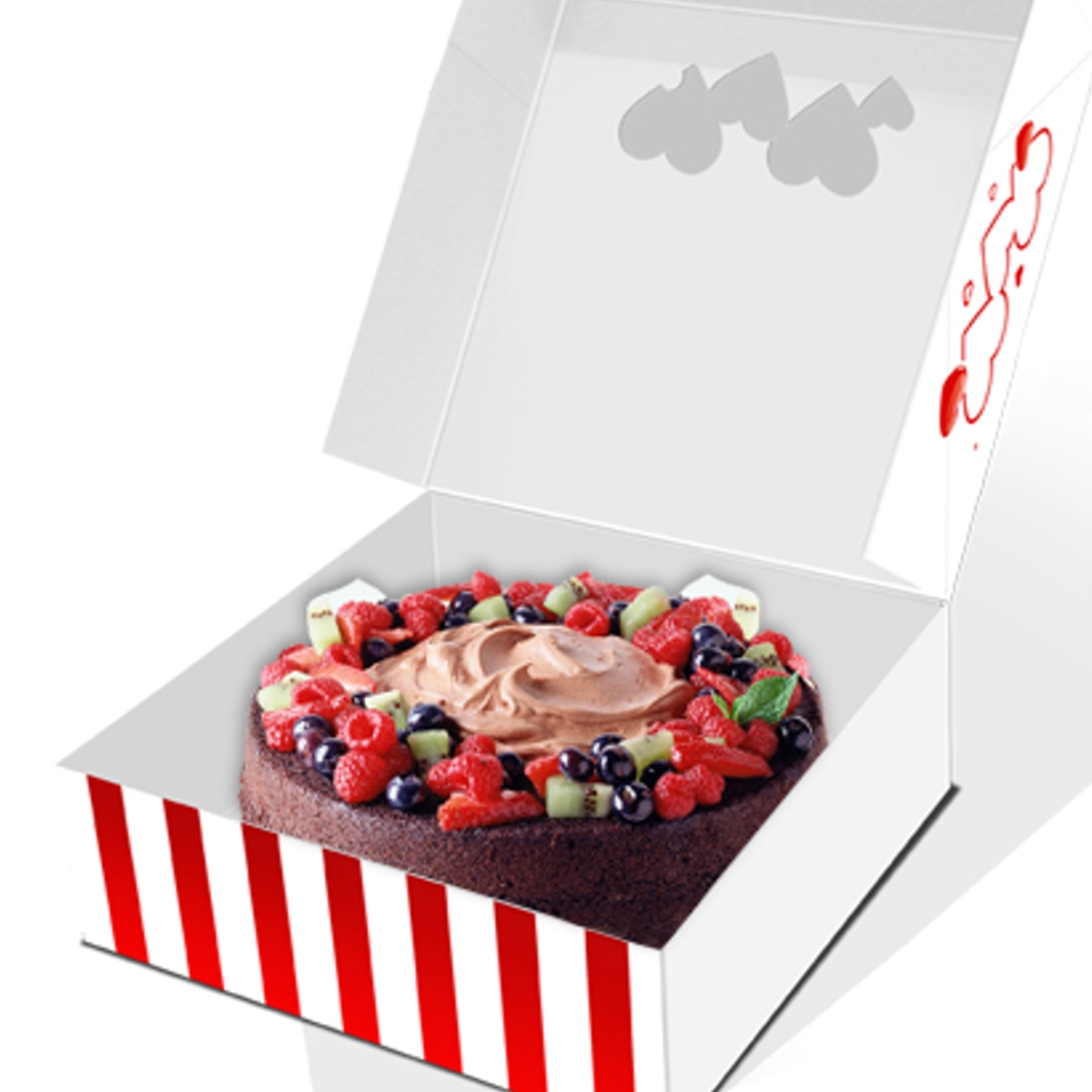 Apresente as suas criações com charme e sofisticação graças à caixa de pastelaria com janela em forma de coração e tampa basculante, uma embalagem compacta de 24×24×7,5 cm pensada para valorizar doces, pequenos bolos, bombons e ofertas gourmet.