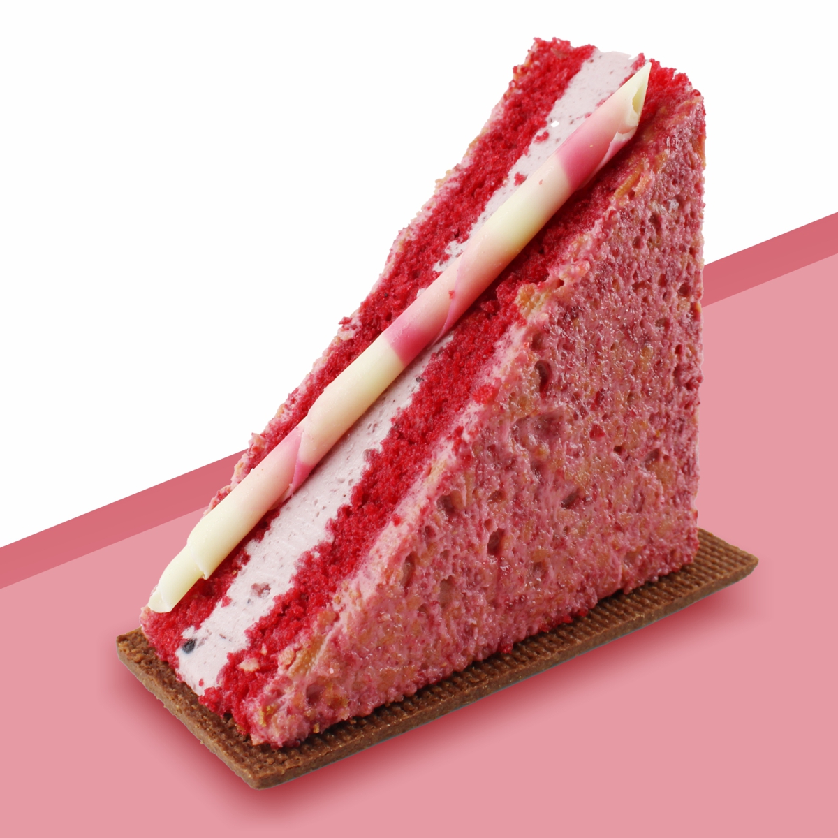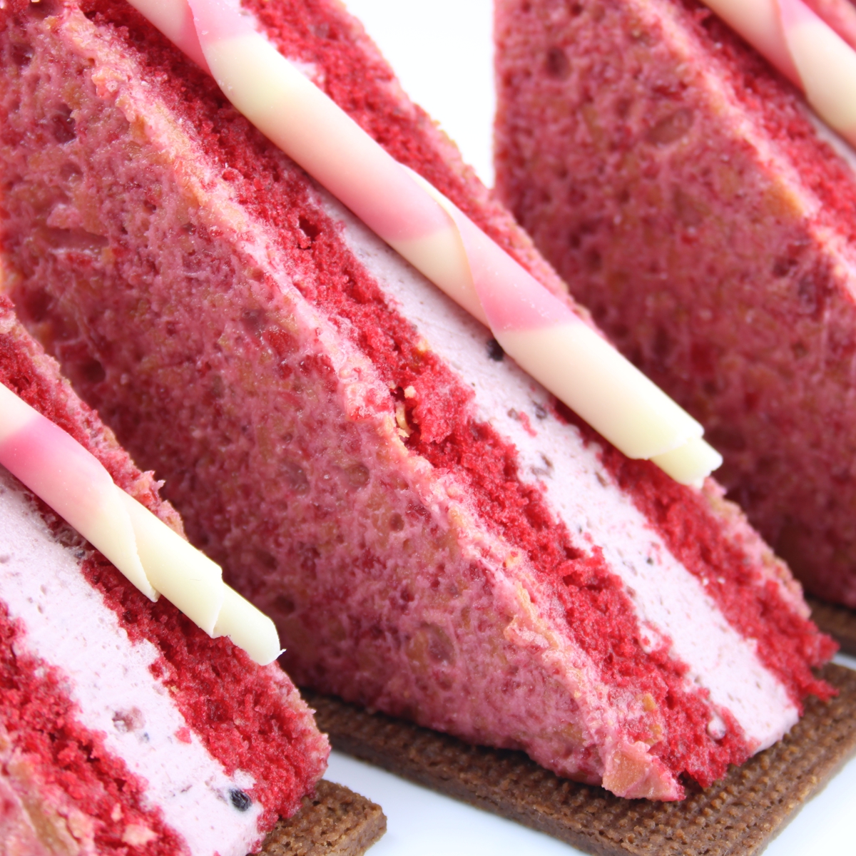 - Cobrir com a segunda camada de Pasta de Cake Red Velvet, nivelar e aplicar novamente uma fina camada de Praliné de Frutos Vermelhos na parte superior.