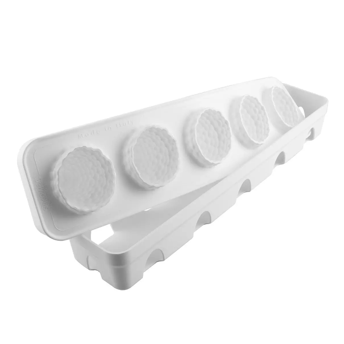 Com 5 cavidades (110 ml cada) e equipado com um prático suporte de plástico para um resultado perfeito durante a preparação e o resfriamento rápido,