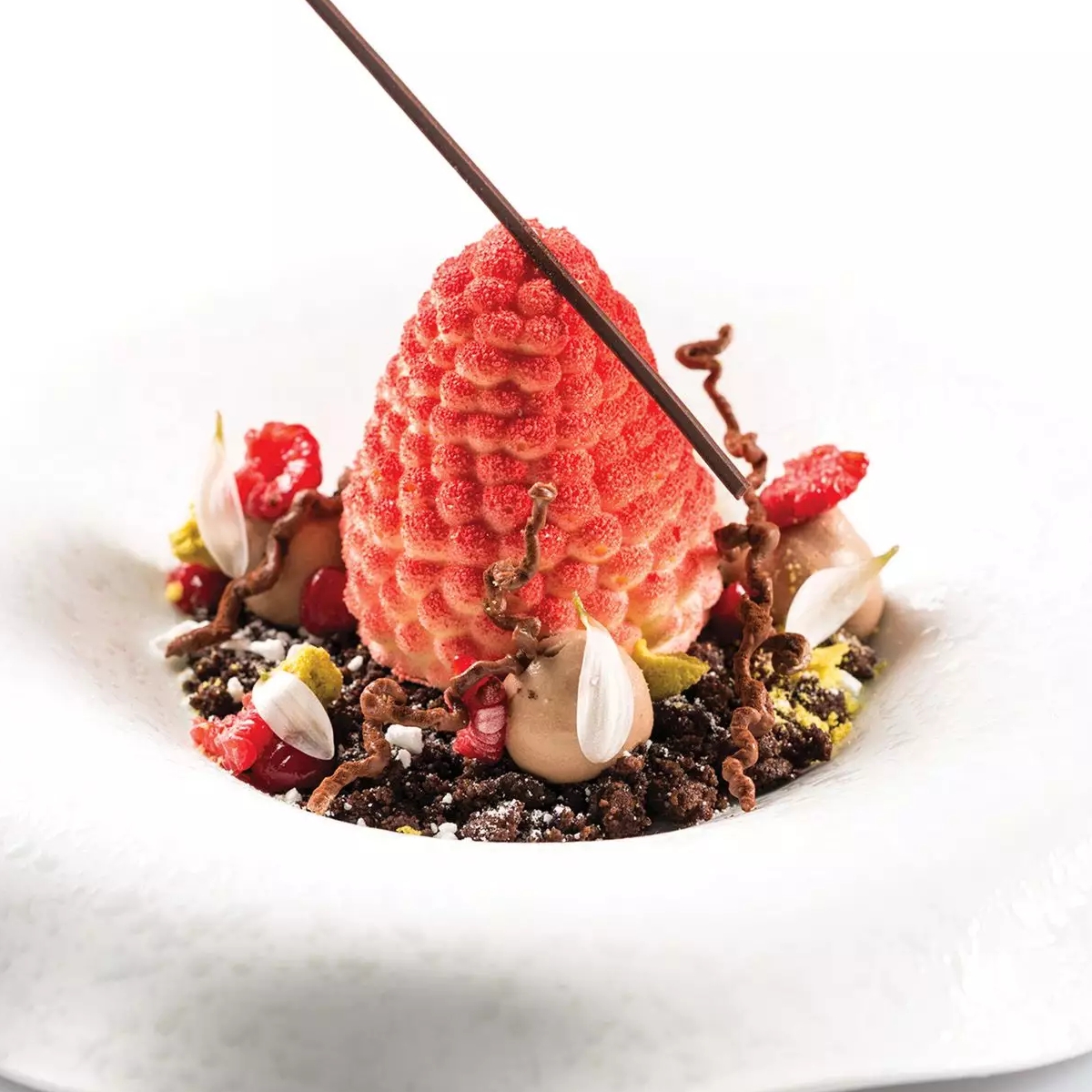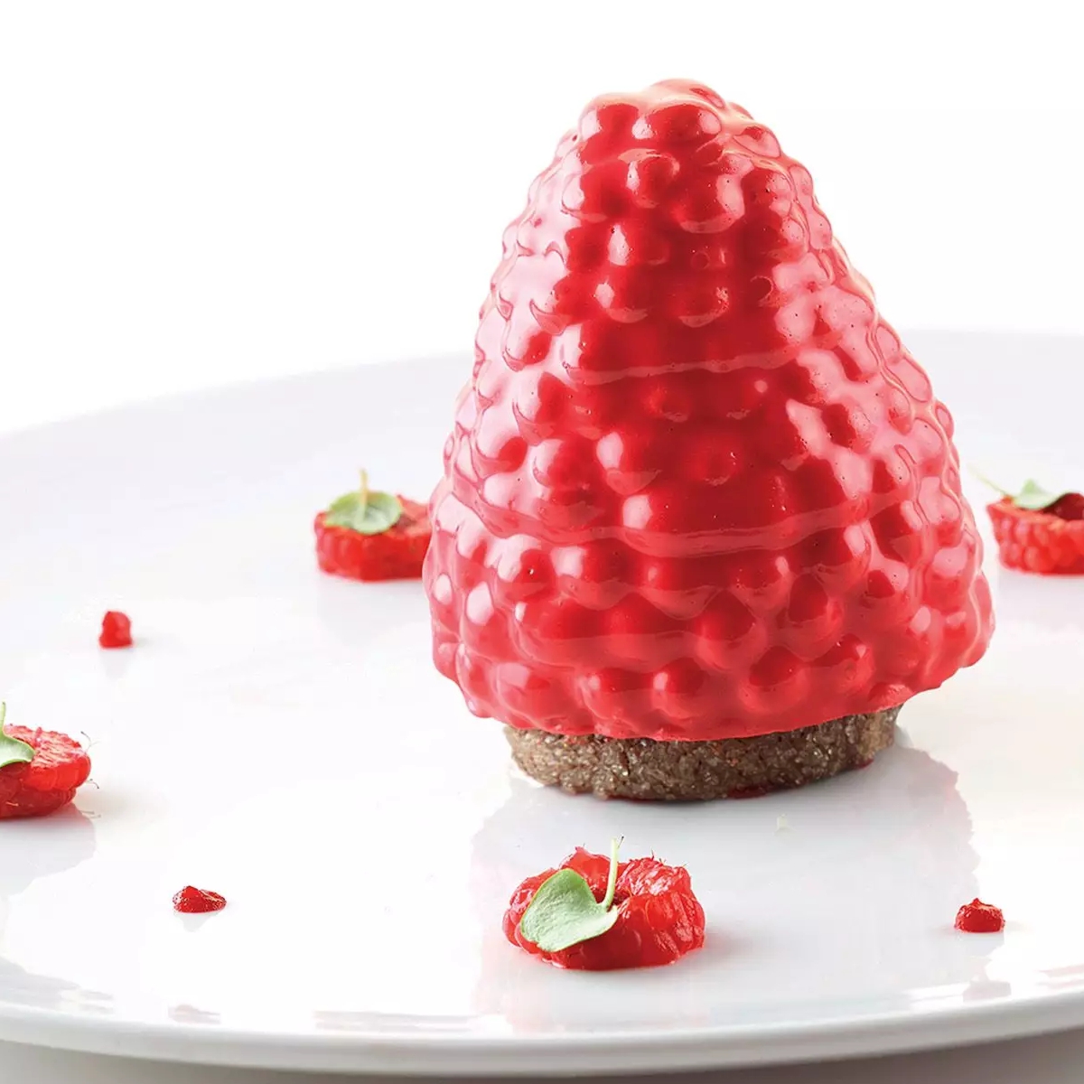 MORA&LAMPONE110 é um molde exclusivo da Silikomart Professional, projetado para recriar com precisão a forma 3D das frutas.