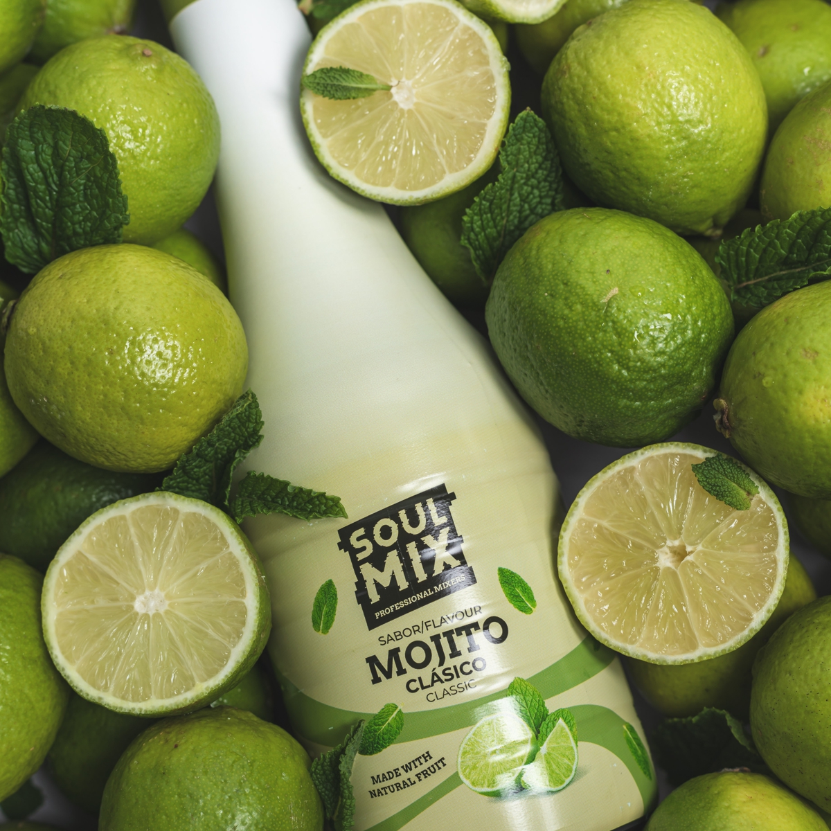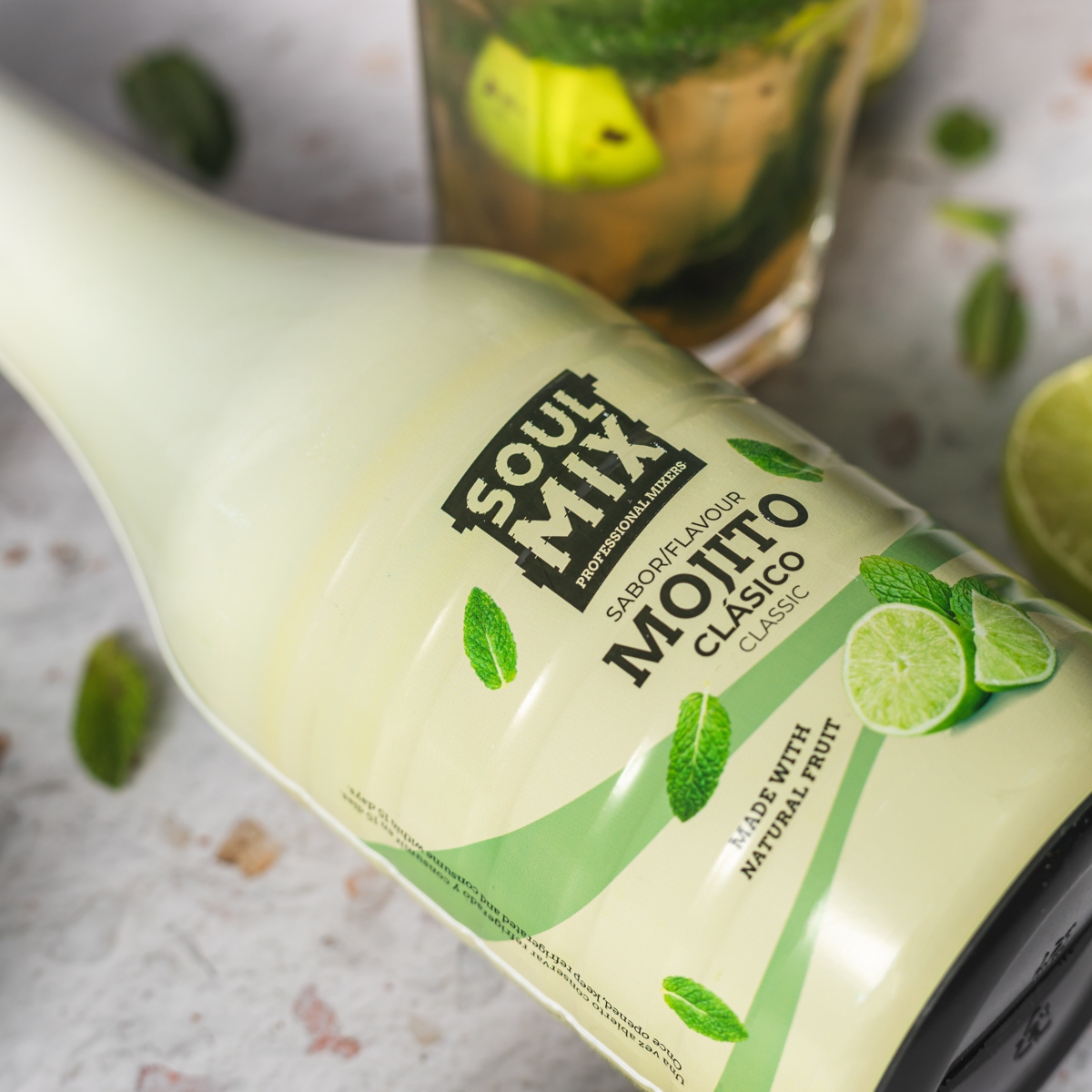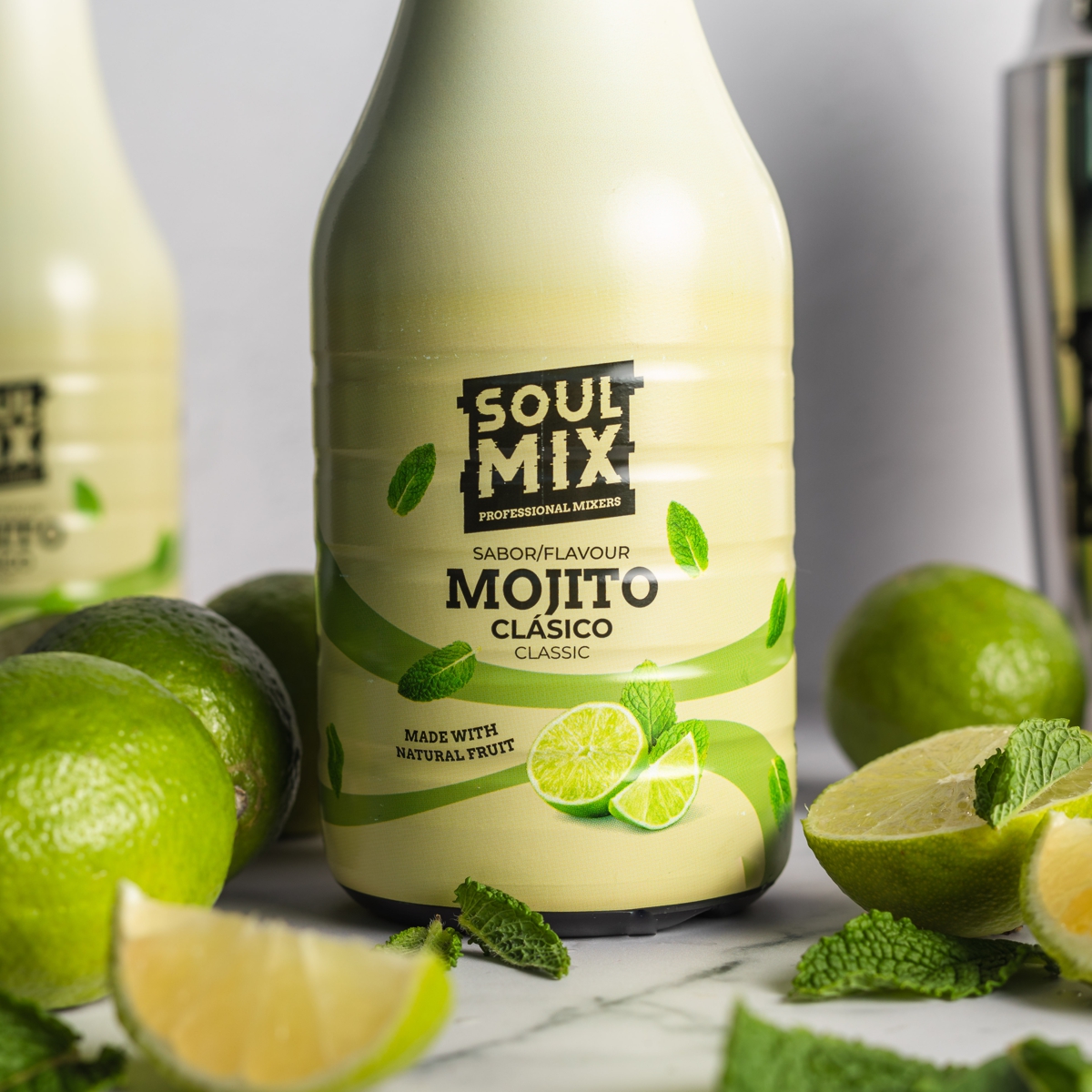 Desfrute do mojito tradicional com a nossa mistura natural de limas frescas, açúcar e hortelã.